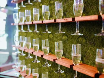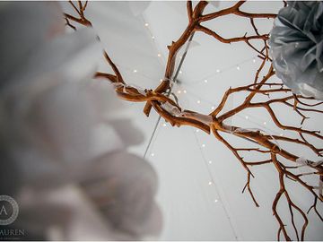 Various unique options available: wine wall, black chair covers, unique backdrops, donut wall, vases, centre piece options, spin wheel, bistro lights, lanterns, chalk boards, and more!